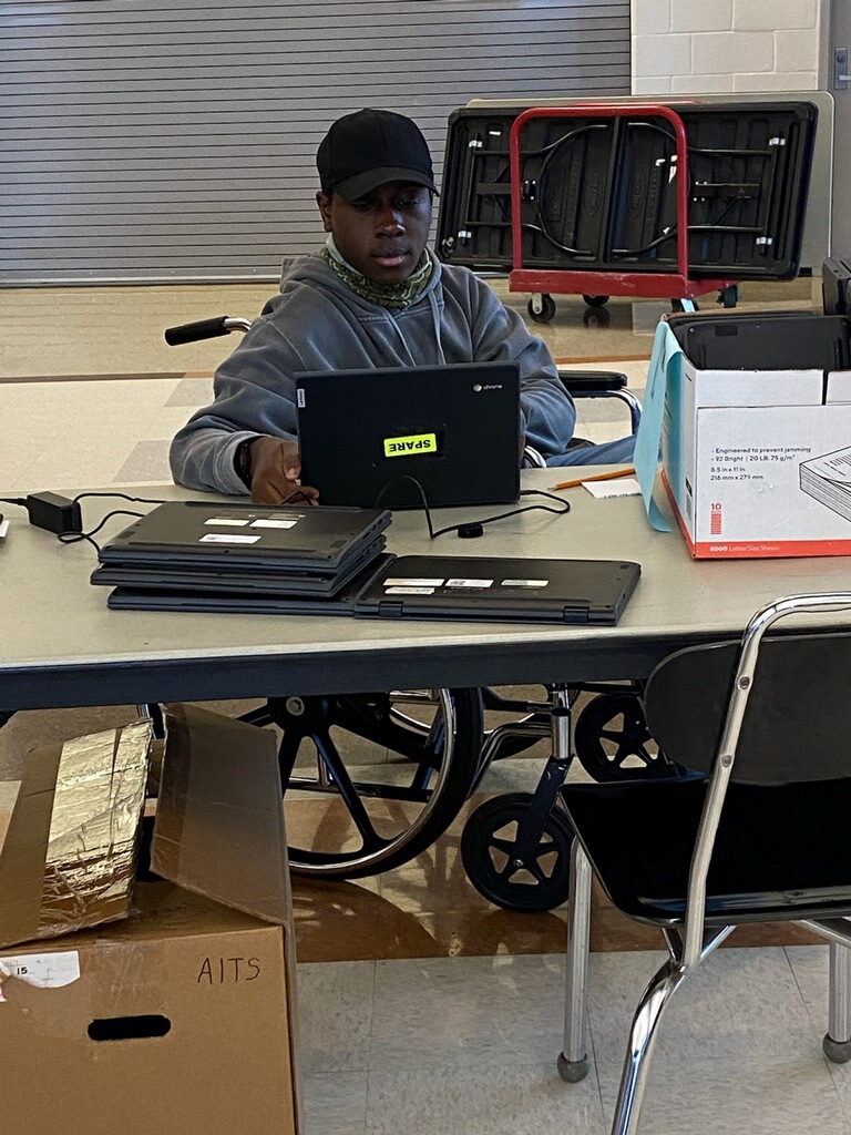 Students experience Work Based Learning in the field of Information Technology by working with the School District of Pickens County Information Technology department. Students power wash old Chromebooks to prepare them for resale.